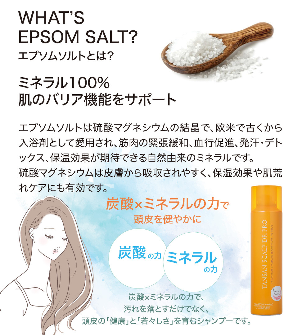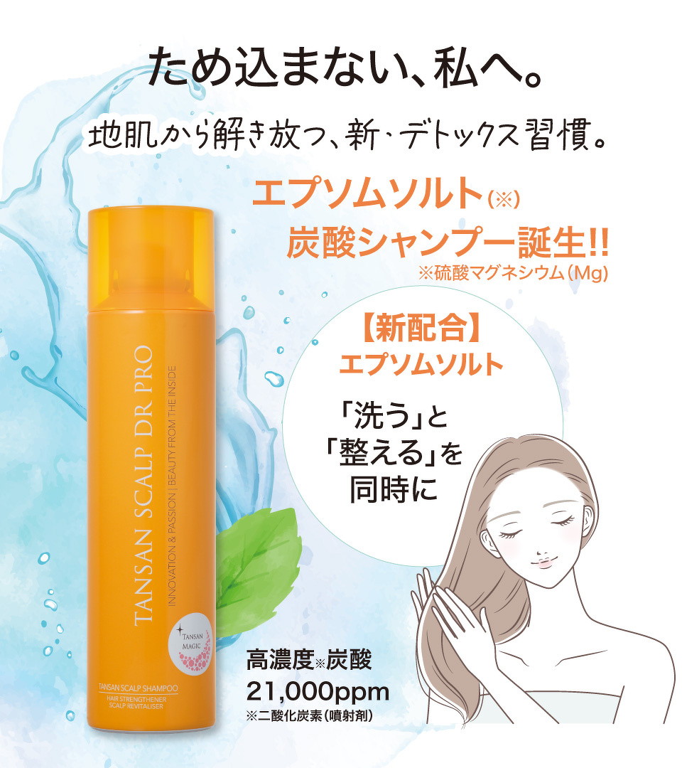 水、ラウロイルメチルアラニンNa、スルホコハク酸(C12-14)パレス-2Na、コカミドプロピルベタイン、コカミドDEA、ココイルグルタミン酸2Na、ラウリルグルコシド、二酸化炭素、BG、ココイルグルタミン酸TEA、温泉水、加水分解シルク、加水分解コラーゲン、グリチルリチン酸2K、α-グルカンオリゴサッカリド、ポリクオタニウム-51、マンダリンオレンジ果皮エキス、酒粕エキス、ソメイヨシノ葉エキス、サガラメエキス、ユズ果実エキス、カニナバラ果実エキス、ラベンダー花エキス、セイヨウサンザシ果実エキス、タチジャコウソウ花/葉エキス、ローズマリー葉エキス、セージ葉エキス、ビルベリー葉エキス、キュウリ果実エキス、オレンジ果皮油、グレープフルーツ果皮油、硫酸Mg、メントール、オレイン酸ポリグリセリル-10、ポリクオタニウム-10、ポリクオタニウム-50、PEG-2カプリリルアミン、ペンチレングリコール、プロパンジオール、エタノール、ペンテト酸5Na、カプリリルグリコール、フェネチルアルコール、フェノキシエタノール