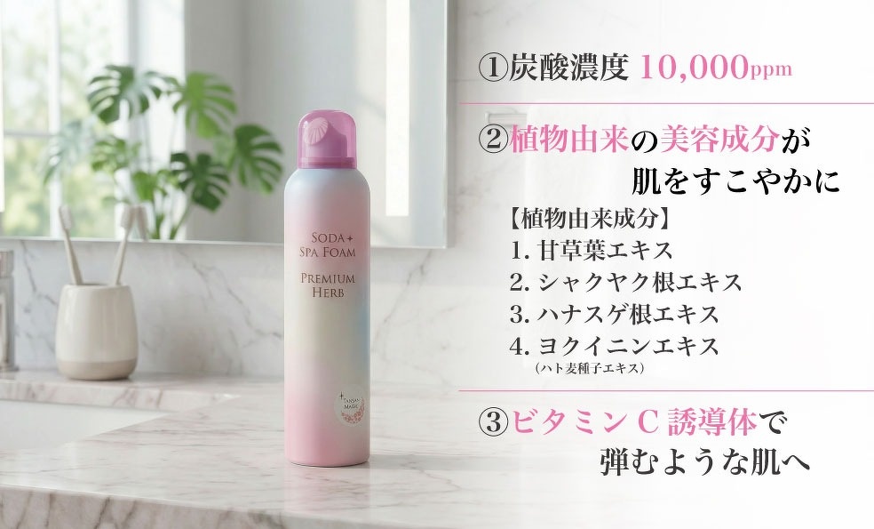 水、BG、グリセリン、ジグリセリン、LPG、PEG-25フィトスタノール、ステアリン酸、セテアリルアルコール、ベヘン酸、TEA、二酸化炭素、ベヘニルアルコール、PEG-150、温泉水、ハチミツ、アスペルギルス/コメ発酵エキス、オリーブ葉エキス、ハナスゲ根エキス、シャクヤク根エキス、ハトムギ種子エキス、カンゾウ葉エキス、リン酸アスコルビルMg、ポリクオタニウムー51、ポリクオタニウム-7、ポリクオタニウム-39、水添ポリイソブテン、プロパンジオール、エタノール、フェノキシエタノール、香料